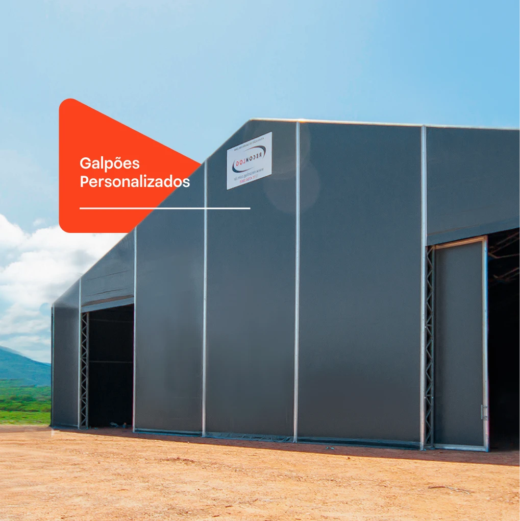 Galpão totalmente personalizável para o seu projeto. Largura, comprimento e altura modulares. Largura frontal de até 50 metros de vão totalmente livre. Sem limites para seu comprimento.